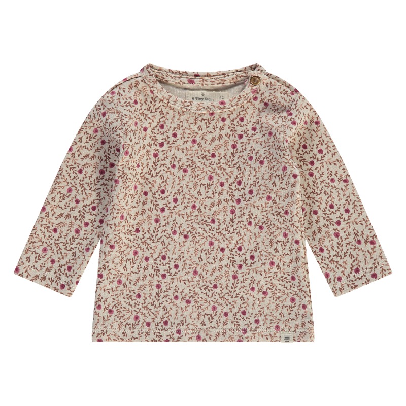 A Tiny Story baby t-shirt long sleeve Flowers pearl. Lief babyshirtje met bloemetjes van A Tiny Story. Je shopt hier de hele A Tiny Story collectie bij Little Department Store. Materiaal: