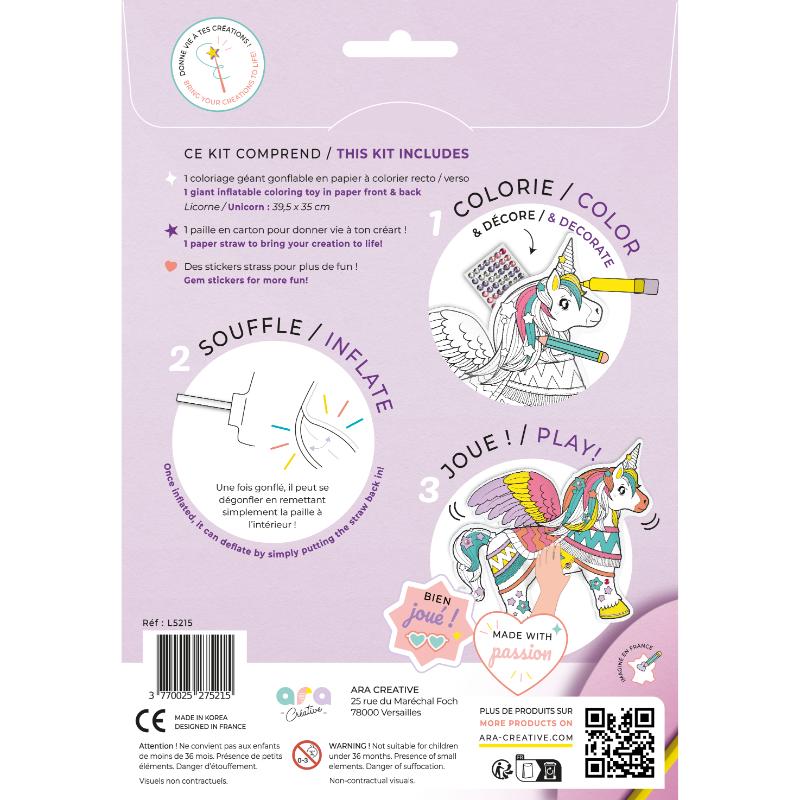 Ara Creative Opblaasbare kleurplaat Reuzen Unicorn.