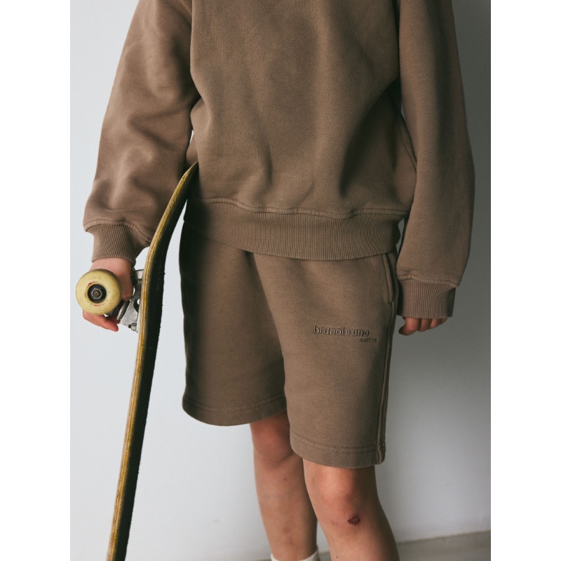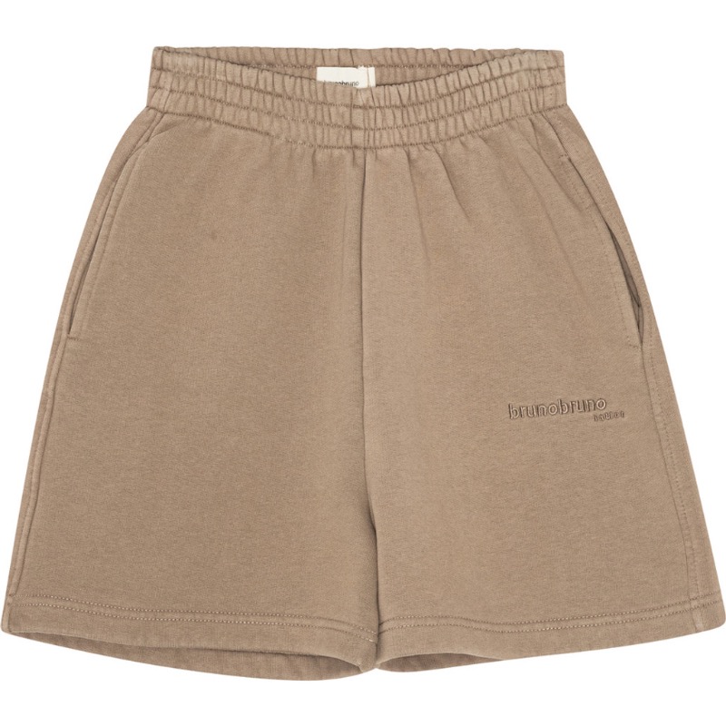 brunobruno nation Theo Sweatshorts Walnut Brown. Relaxte, wijde sweatshorts van 100% biologisch katoen. Met een losse pasvorm en een elastische tailleband voor extra comfort en volume.