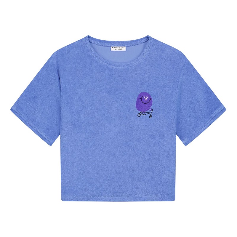Daily Brat – Giggling Towel T-shirt Blue. Tof blauw t-shirt met opdruk op de voorkant!. Shop hier meer Daily Brat kleding bij Little Department Store.