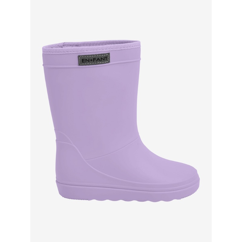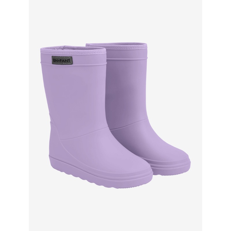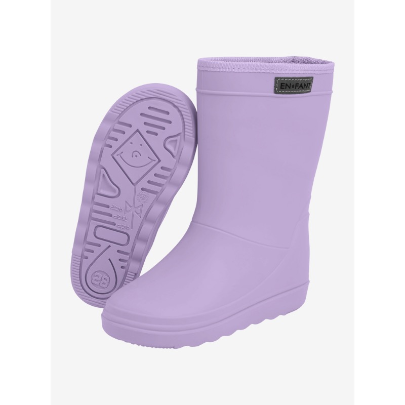 Enfant Rainboot Lavender. Het merk ENFANT heeft niet alleen maar thermoboots, ze hebben ook toffe regenlaarzen! Deze boots zijn echt de musthaves voor in de regen! Waterdicht, gemaakt van 100% gereycled materiaal, en ze sluiten mooi aan! Dus ben je gewend aan de thermoboots die gevoerd zijn met wol, maar worden die te warm? Dan wil je deze regenlaarzen voor je kind! Weer in de allermooiste mooie kleuren. En de leest is smal tot gewoon.