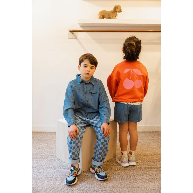 Leuke set bestaande uit korte broek met stipjes en teckel van Mini Rodini, lief bloesje met bloemetjes van The Campamento en sneakers van Flower Mountain. Hieronder vind je alle items die op de foto staan. Hopelijk is je maat nog op voorraad!