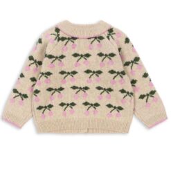Konges Slojd Belou knit cardigan cherry. Mooi klassiek vestje in de kleur off white met kersjes patroon. Gebreid van een lekker warme wol mix.