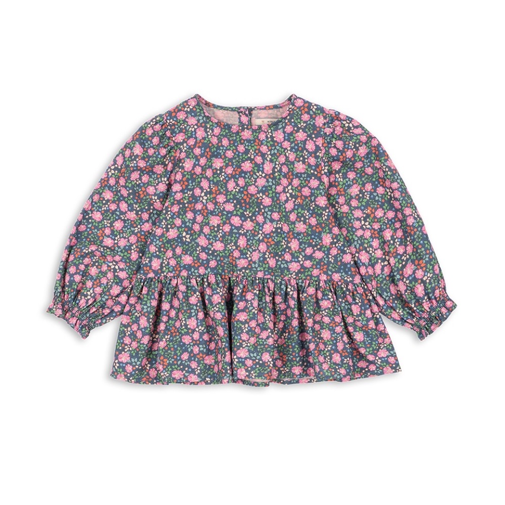 Konges Slojd Cianna Blouse. Mooie blouse met bloemetjesprint in een zachte geweven stof met leuk crinkle effect. Sluit met knoopjes in de nek. Gemaakt van 100% biologisch katoen.