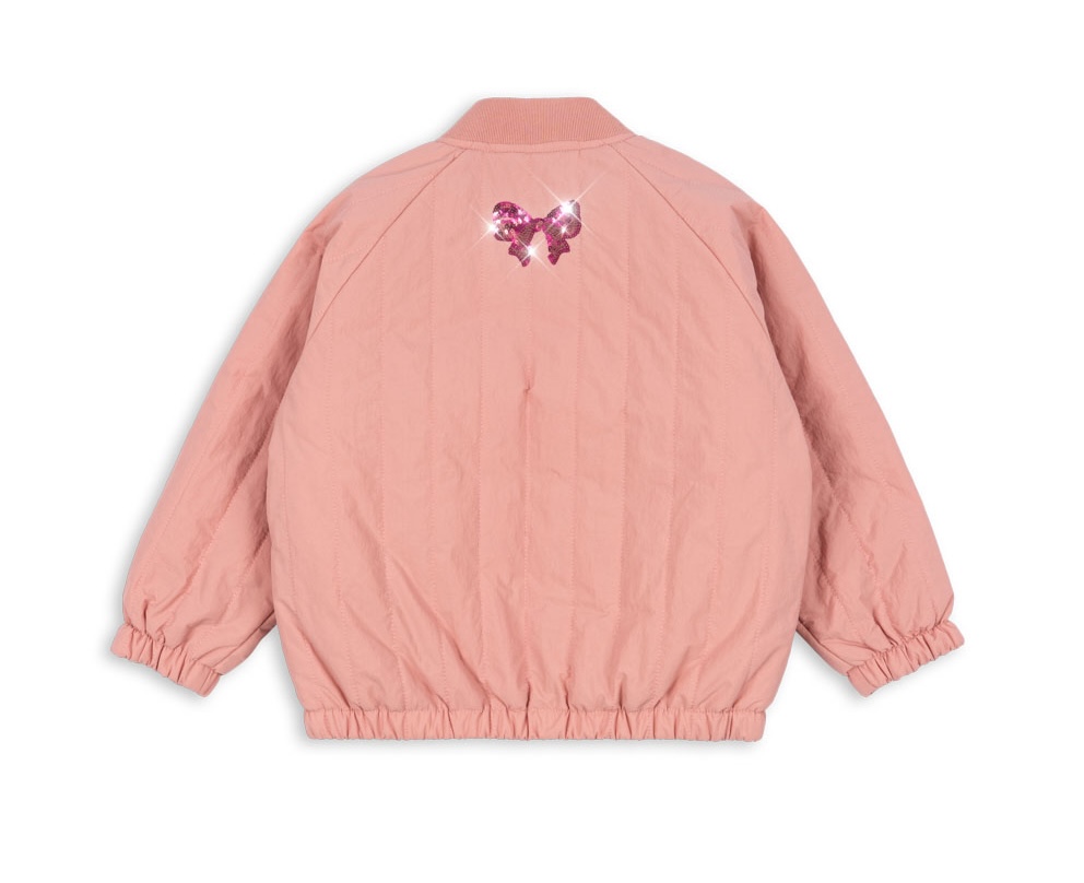 Konges Slojd Juno Sequin Bomber Jacket Rosette. Dit geweldige bomberjasje is de must have van het merk Konges Slojd. Ieder seizoen heeft Konges Sloejd weer toffe nieuwe printjes en kleuren voor van deze fijne jasjes. Ideaal voor de lente, zomer en herfst! Een perfect tussenjasje. De juno bombers vallen aan de ruime kant. Dus twijfel je tussen twee maten? Kies dan de kleinste! Deze jasjes zijn waterafstotend, wind resistent en isolerend
