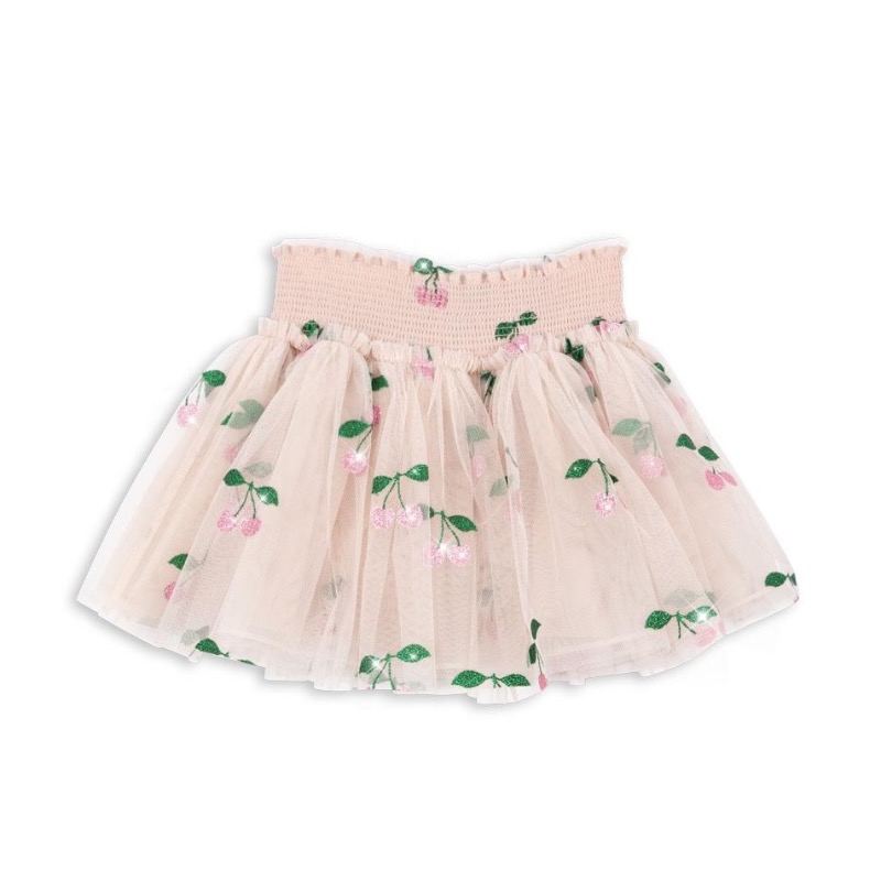 Konges Slojd Tullie Smock Skirt Ma Grande Cerise Pink. Wat een leuk tuturokje van Konges Slojd met een mooie kersenprint. De rok heeft een zachte, elastische taille en is gelaagd voor extra volume. Je shopt hier de hele Konges Slojd collectie bij Little Department Store.
