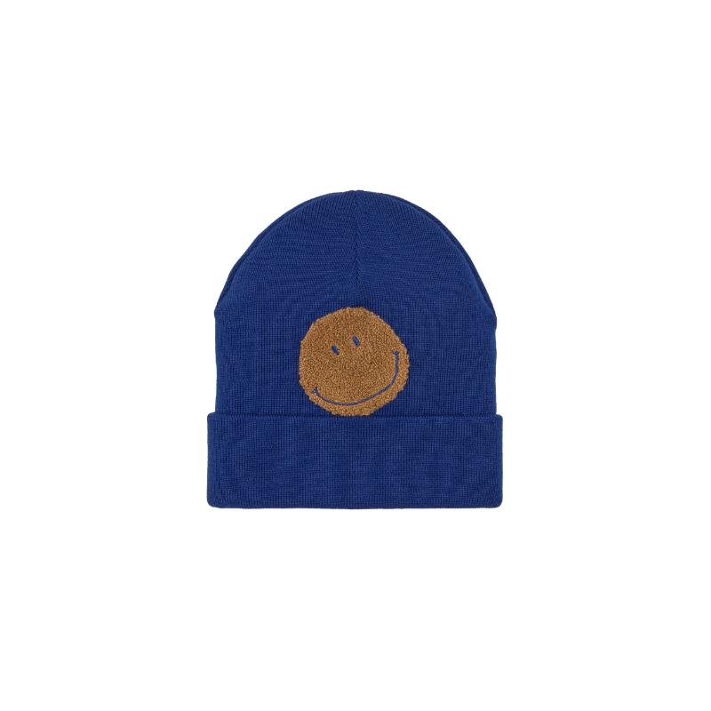 Lassig Merino Beanie smile blue 1-3 jaar. De vrolijke beanie van Lassig is gemaakt van 100% van merino wol. De muts is gemaakt in een fijn breipatroon en heeft een goede pasvorm om op het hoofd te blijven.