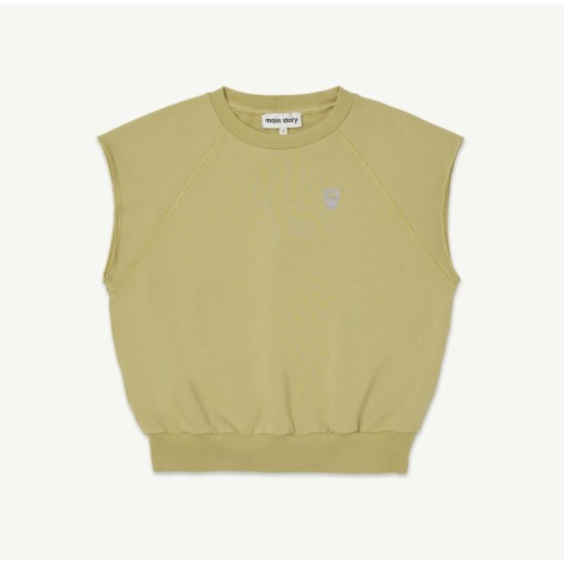 Main Story Tank Silver Fern. De tanktop is gemaakt van sweatstof, wat wat dikker is dan t-shirt stof. De top heeft een raglan oversized vorm met cut off sleeves, tib boorden en geborduurd logo. Gemaakt van 100% biologisch katoen.
