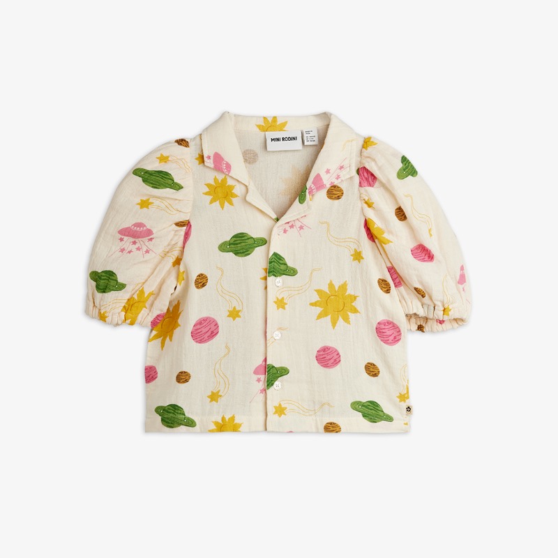 Mini Rodini Space muslin blouse Een mooie blouse met een kraagje, van mousseline met space print van Mini Rodini. Shop hier meer Mini Rodini bij Little Department Store.