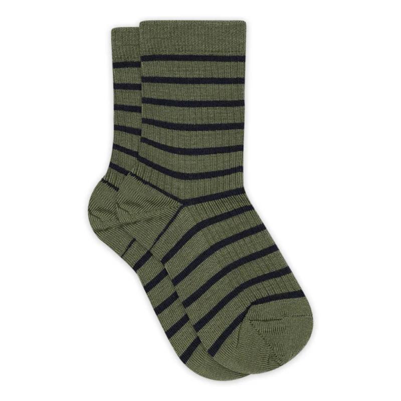 mp Denmark Viggy Socks Olivine 792996 1235. Super zachte wollen gestreepte sokken. Deze fijne sokken hebben een zeer goede pasvorm, en elastiek aan de rand, waardoor ze op hun plaats blijven aan de voet. Shop hier meer mp Denmark.