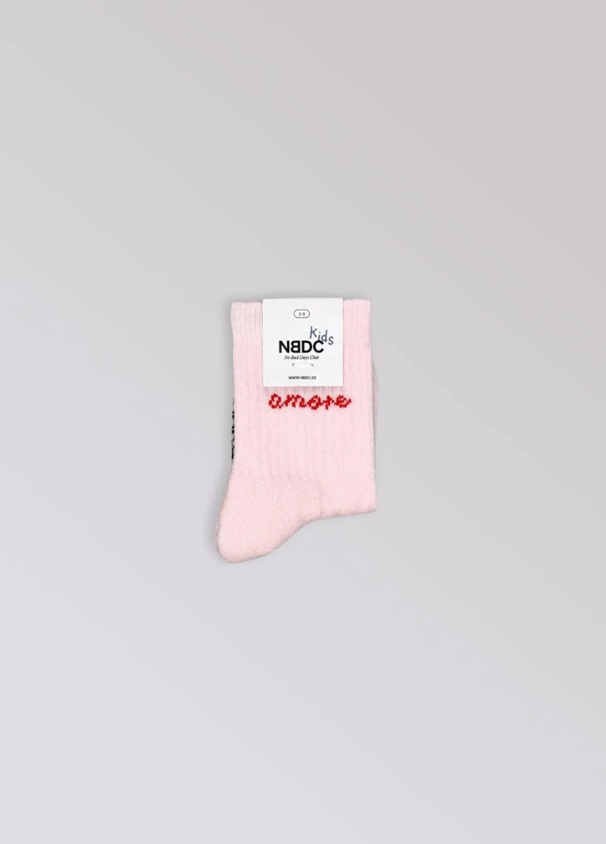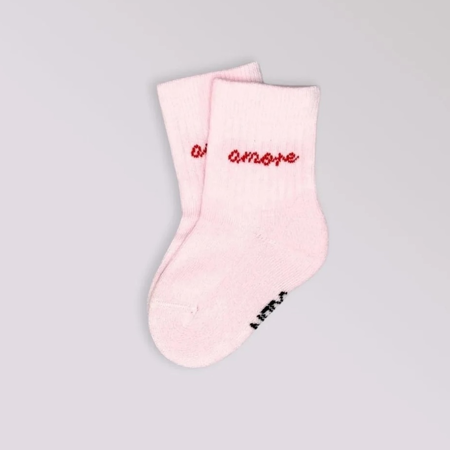 NBDC Amore babysokjes.Te leuk: Superleuke roze sportsokken voor babies met Amore erop. Zeg Amore en stuur wat liefde de wereld in – deze sok staat voor knuffels, kussen en positieve vibes. Het zachte roze gecombineerd met rode tekst brengt warmte in je look. Zoals altijd met zachte biokatoen, perfecte pasvorm en hoogwaardige afwerking in Portugal.