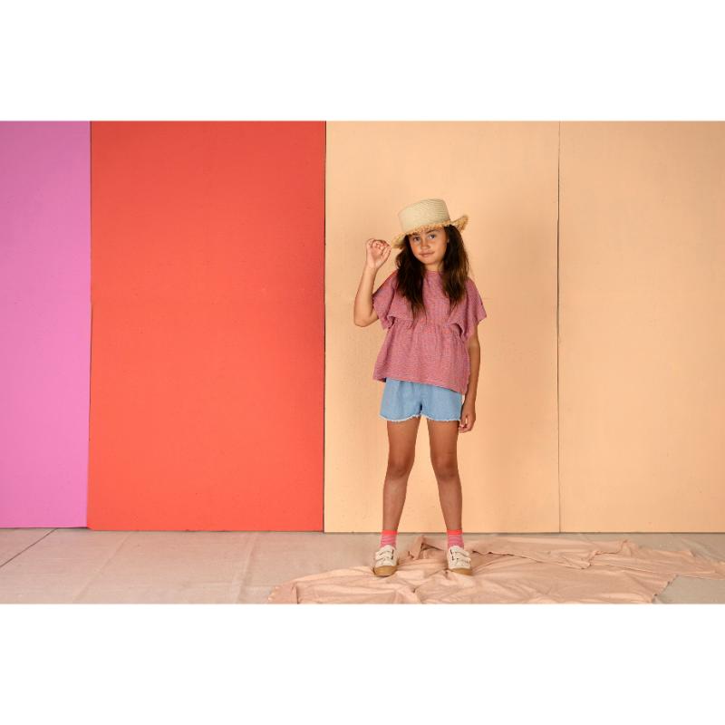 Nixnut Rio Top Iris Stripe. Een fijne zomer top van Nixnut! De top heeft is mouwloos met een ruffle aan de onderkant. Deze top matcht bovendien perfect met de rest van de Nixnut collectie, en is ook heel goed te combineren met andere merkjes. Je shopt hier de hele Nixnut collectie bij Little Department Store.