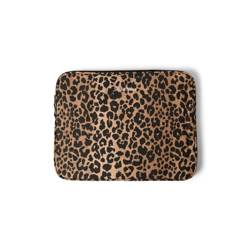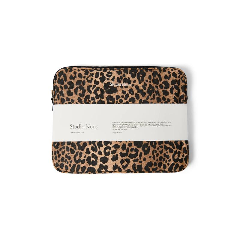 Studio Noos Brown Leopard Cotton Laptop Sleeve. De katoenen laptophoes voor 15 inch laptops is ontworpen om je laptop te beschermen en tegelijkertijd een stijlvolle touch aan je dagelijkse benodigdheden te geven. Deze ruime hoes is gemaakt van stevig katoen en biedt betrouwbare bescherming voor je standaard 15-inch laptop of slanke 16-inch laptop. Perfect voor werk, reizen of dagelijks gebruik.