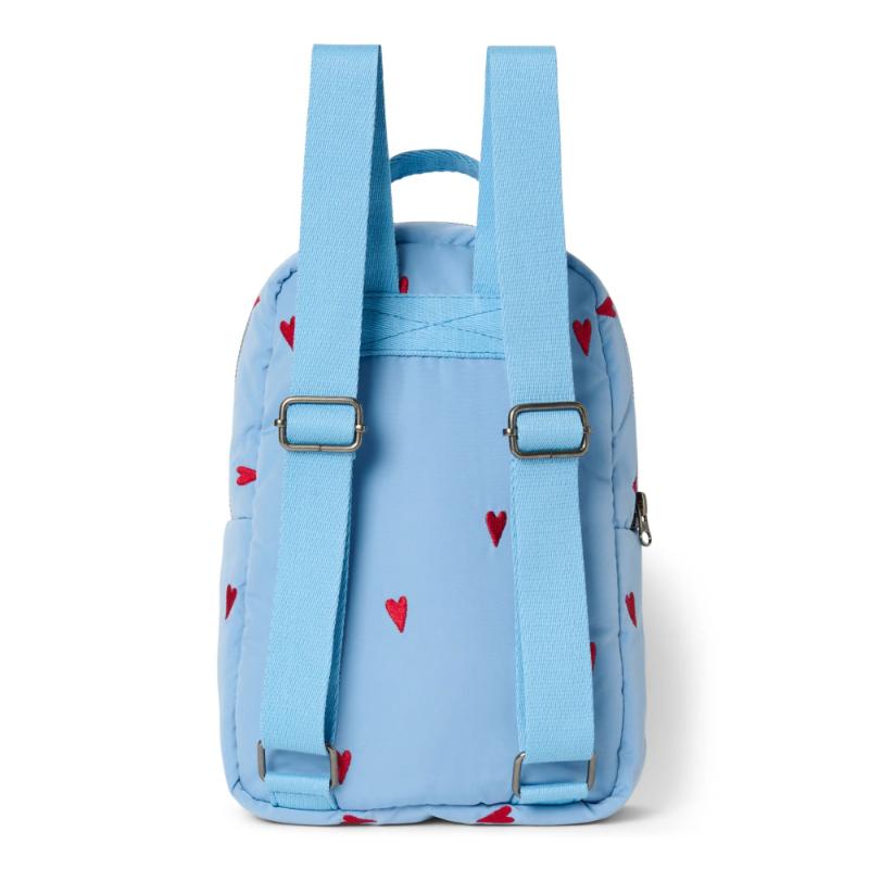 Studio Noos Light Blue Hearts Puffy Mini Backpack. Een rugzak in de puffy stof van Studio Noos. Nu kan je kleintje zelf ook genieten van zijn of haar eigen Studio Noos tas! De hartjes zijn random geplaatst, elke tas is dus uniek! Geschikt vanaf 2 jaar.