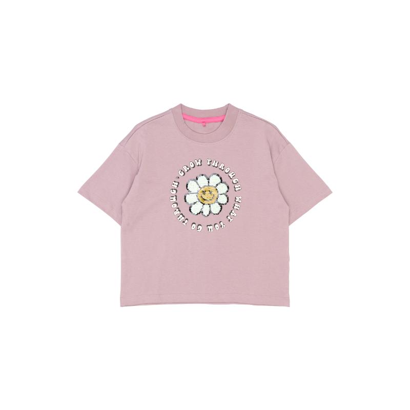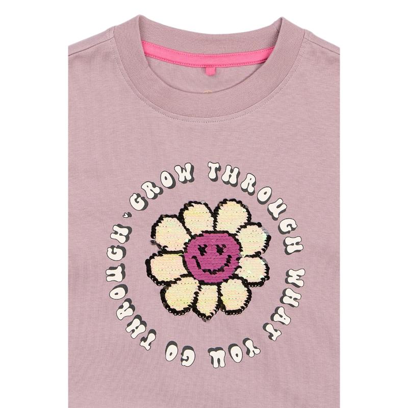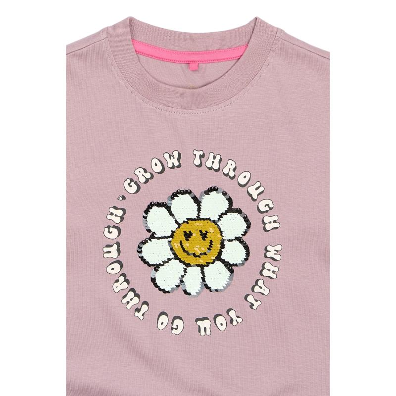 THE NEW Skye tee Sea Fog. Roze shirt met bloem van pailletten op de voorkant die kan veranderen van kleur. ! Shop hier meer The New bij Little Department Store.